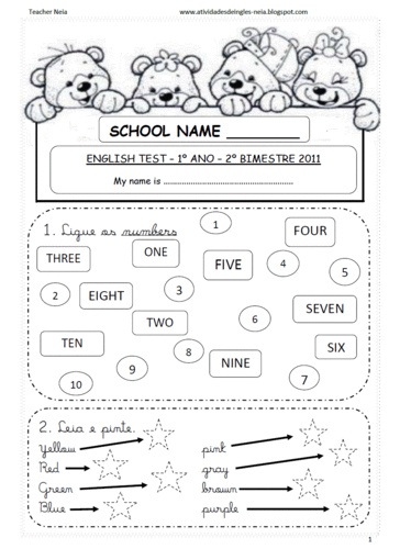 Veja as atividades de avaliação de inglês 1°, 2° e 3° ano do ensino fundamental, são questões em imagens prontas para imprimir e aplicar como prova para os alunos da escola.