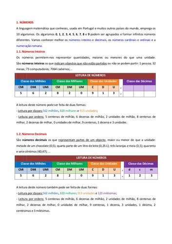 NÚMEROSA linguagem matemática que conheces, usada em Portugal e muitos outros países do mundo, emprega os10 algarismos. Os algarismos 0, 1, 2, 3, 4, 5, 6, 7, 8 e 9 podem ser agrupados e formar infinitos númerosdiferentes. Vamos conhecer melhor os números inteiros e decimais, os números cardinais e ordinais e anumeração romana.